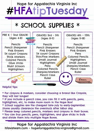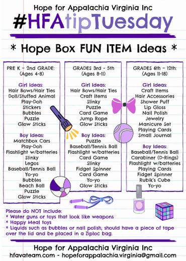 Hope for Appalachia Virginia Inc and adopt a Kentucky school to make Hope Boxes for the Spring 2025 Trip. To learn more about how to Adopt a School, you can click on the link below!